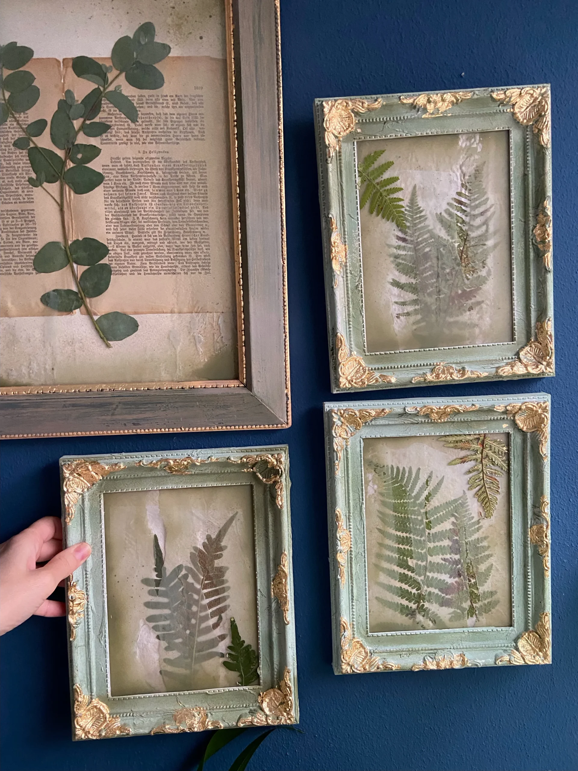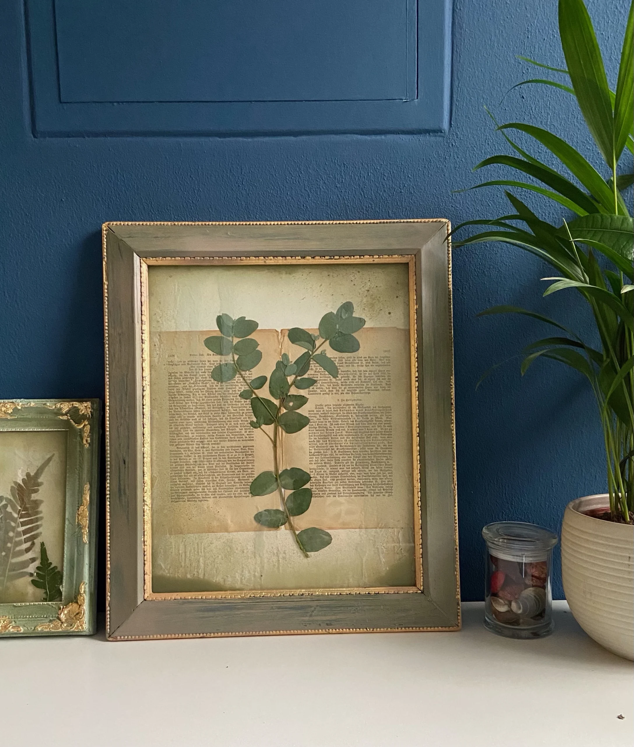 Auftragskunst: Lost Garden Serie Unikat: gepresste Botanik auf handgeschöpftem Papier. Inkl. antikem Rahmen, echtem Blattgold & konservierter Botanik. Einzigartige Wabi-Sabi Ästhetik & haptische Kostbarkeit.