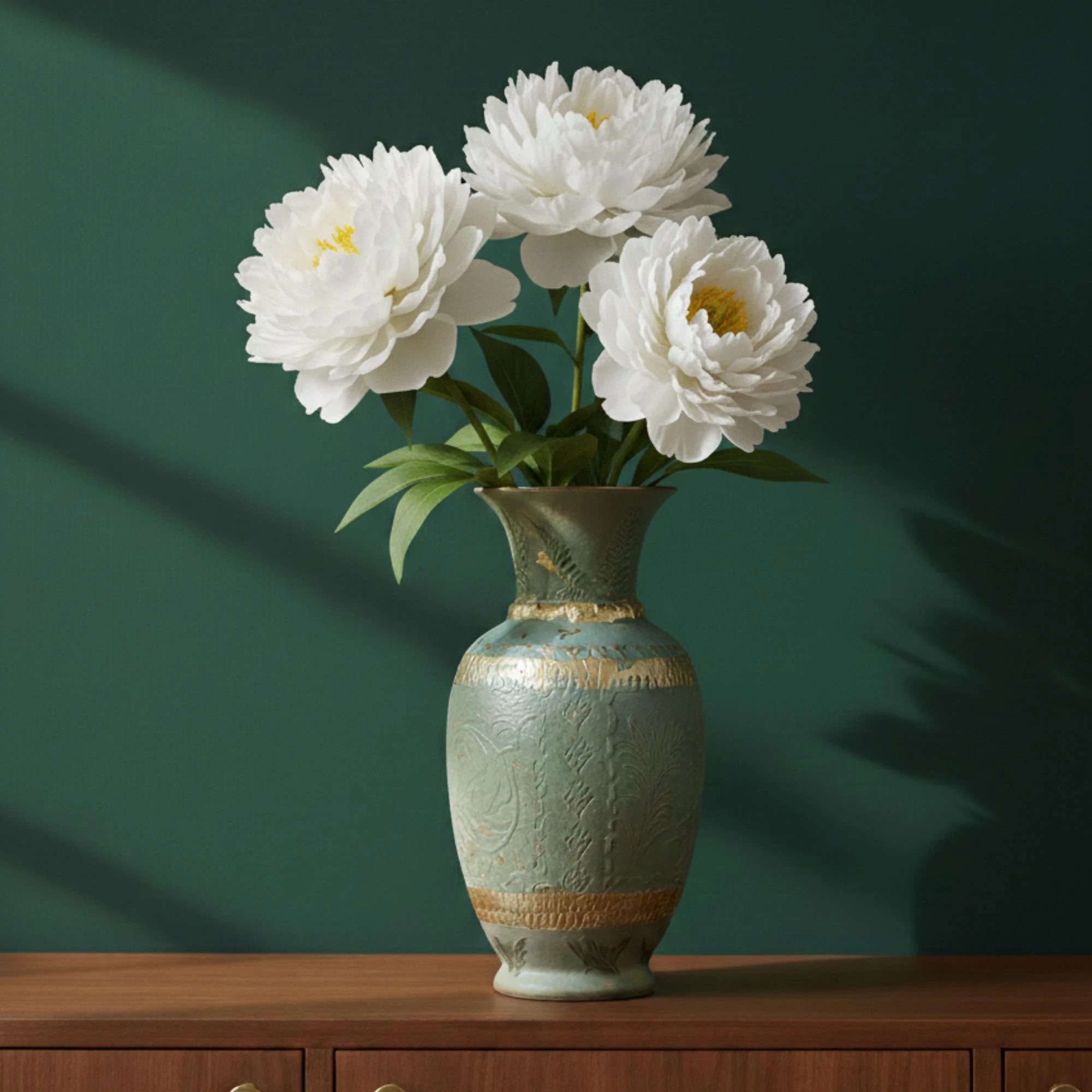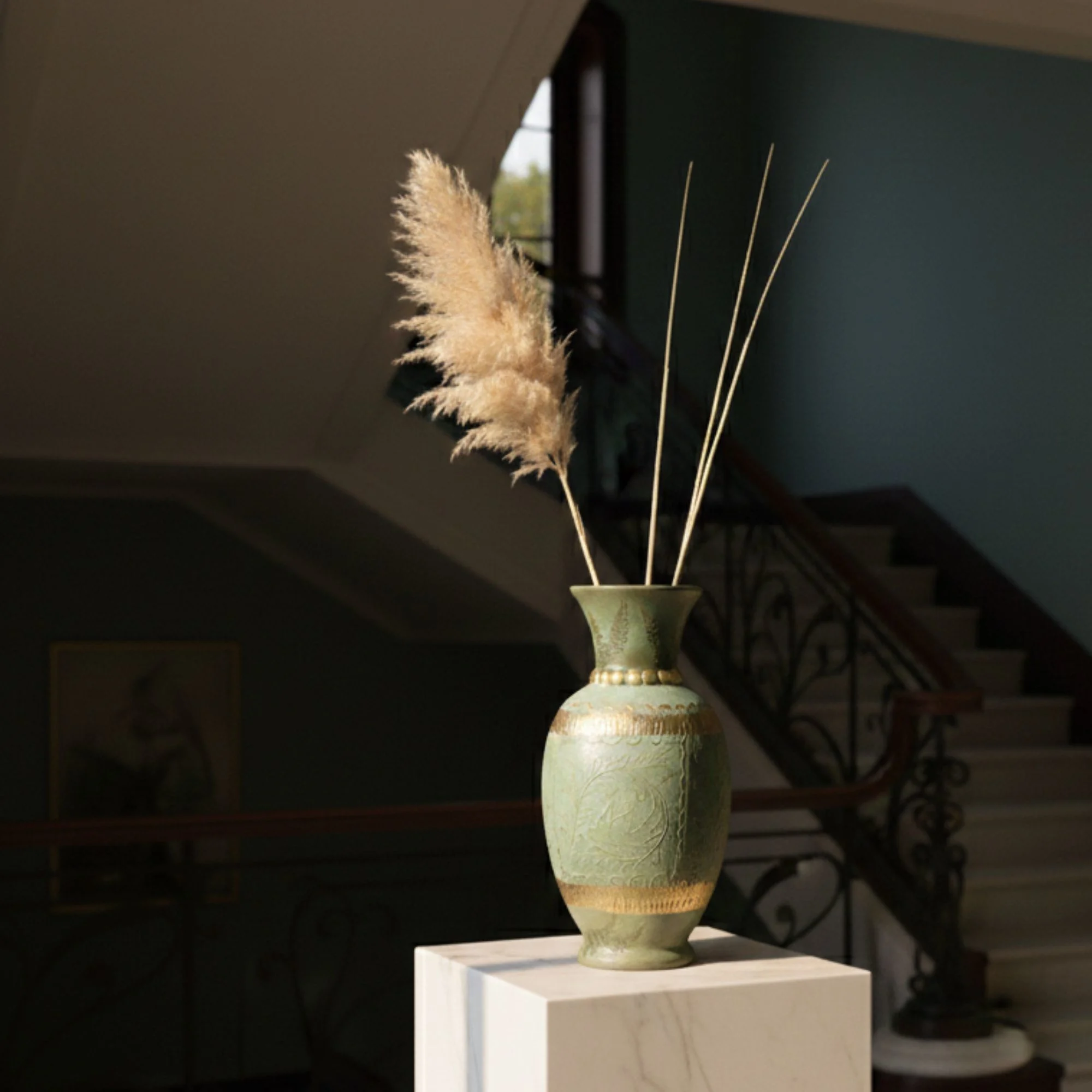Edler Shabby-Chic: Die Oberfläche wurde gezielt im Shabby-Chic-Stil aufbereitet. Diese antike Patina verleiht der Vase ihren authentischen Charakter und macht sie zum idealen Partner für Jugendstil-Ästhetik.