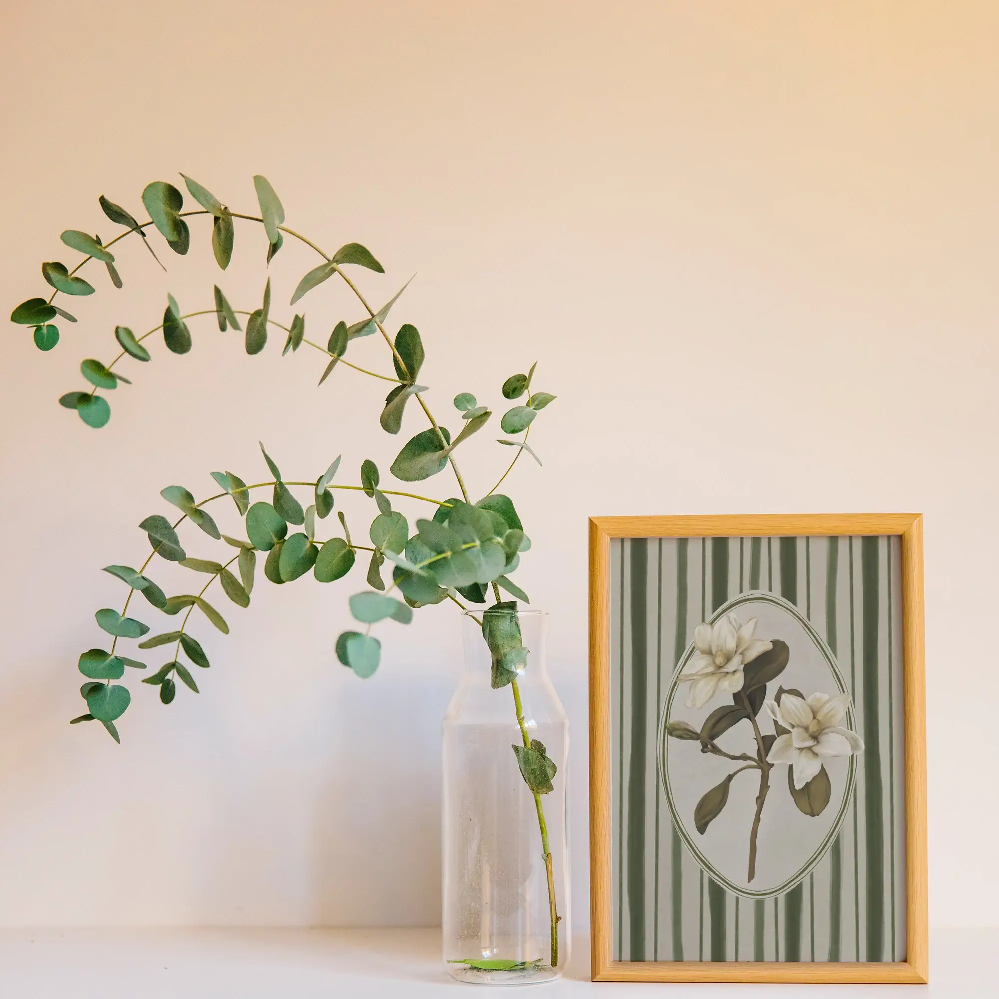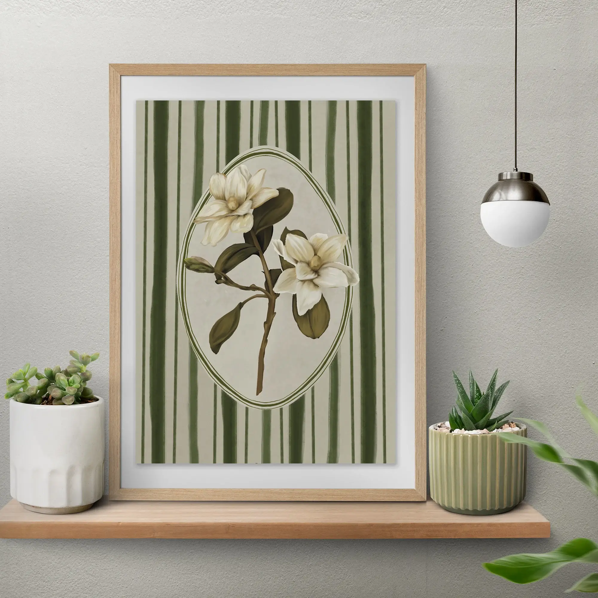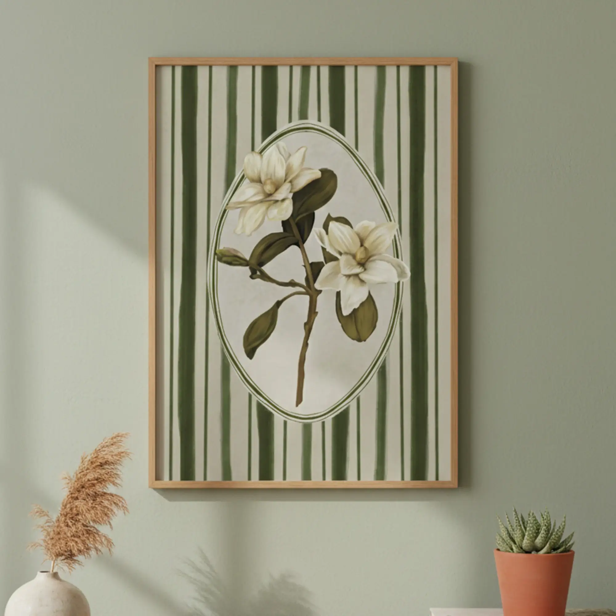 Kunstdruck: Zeitlose Botanik trifft auf modernes Streifen-Design