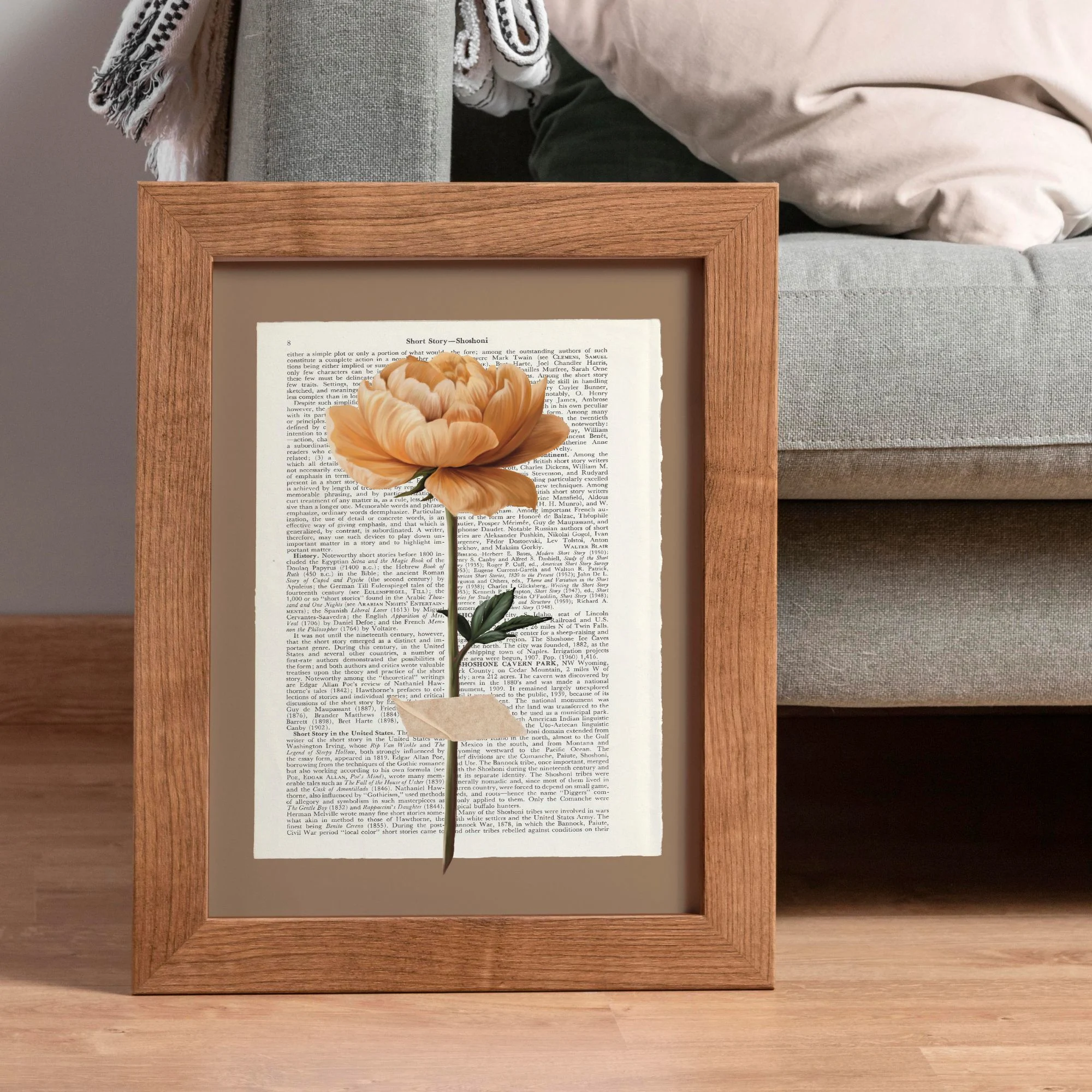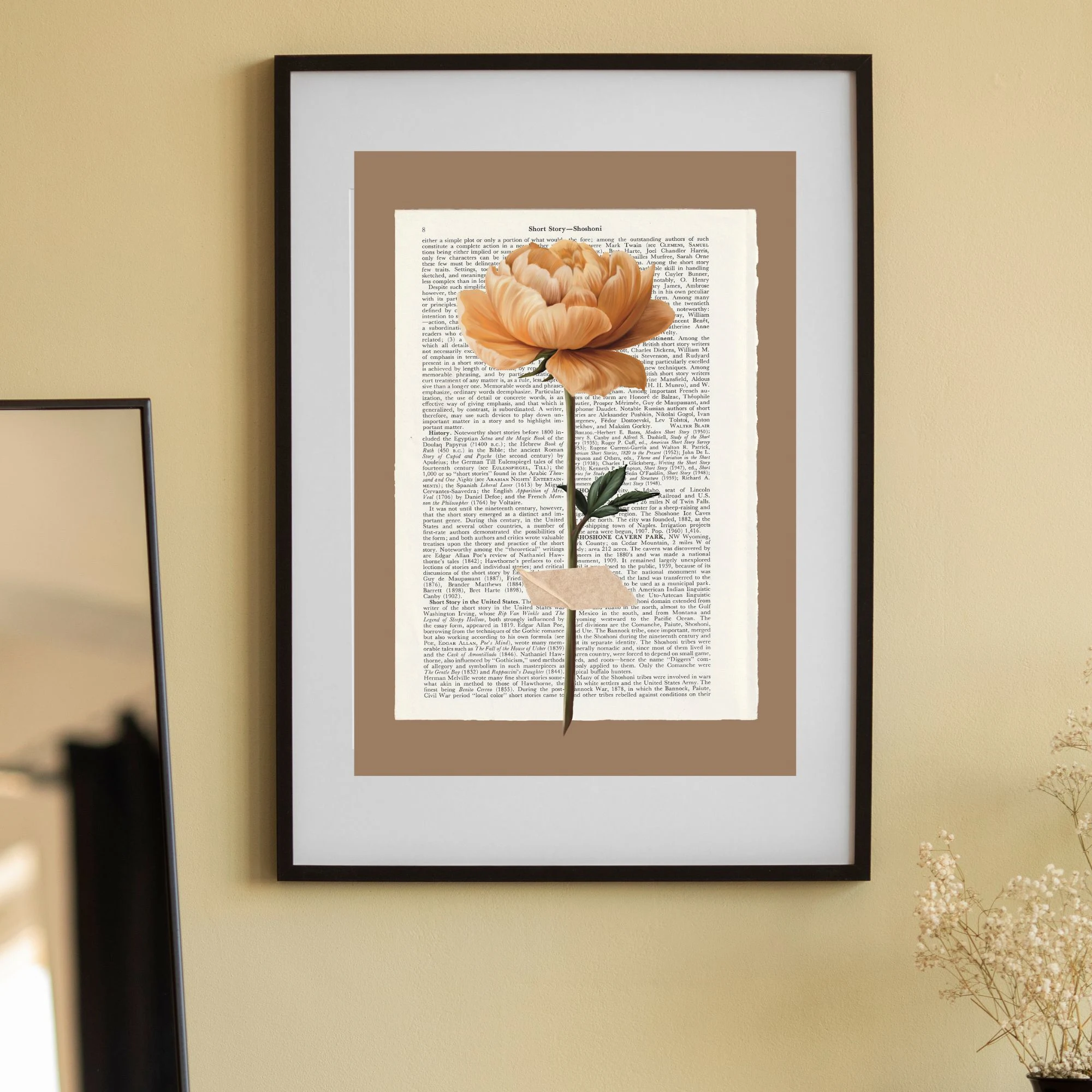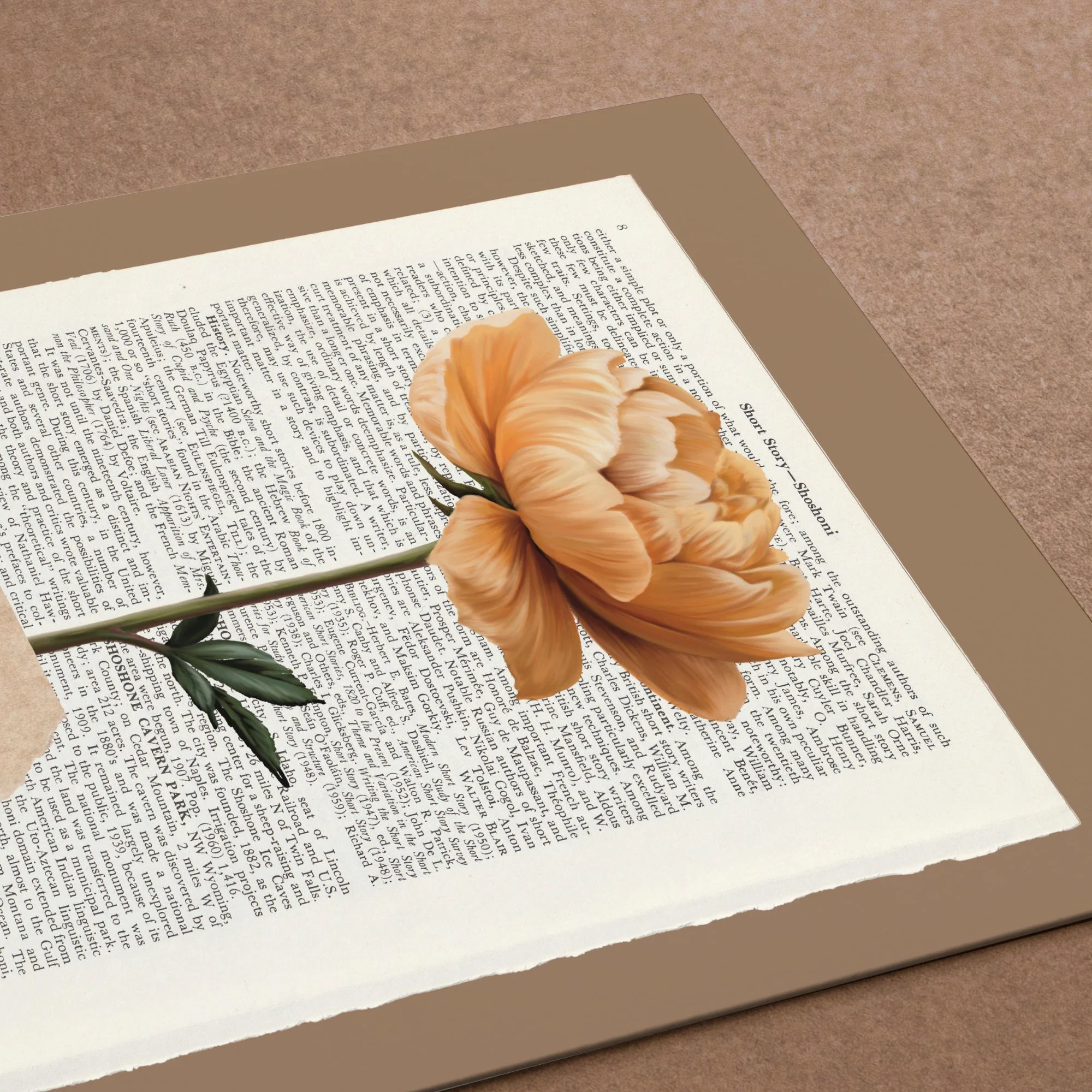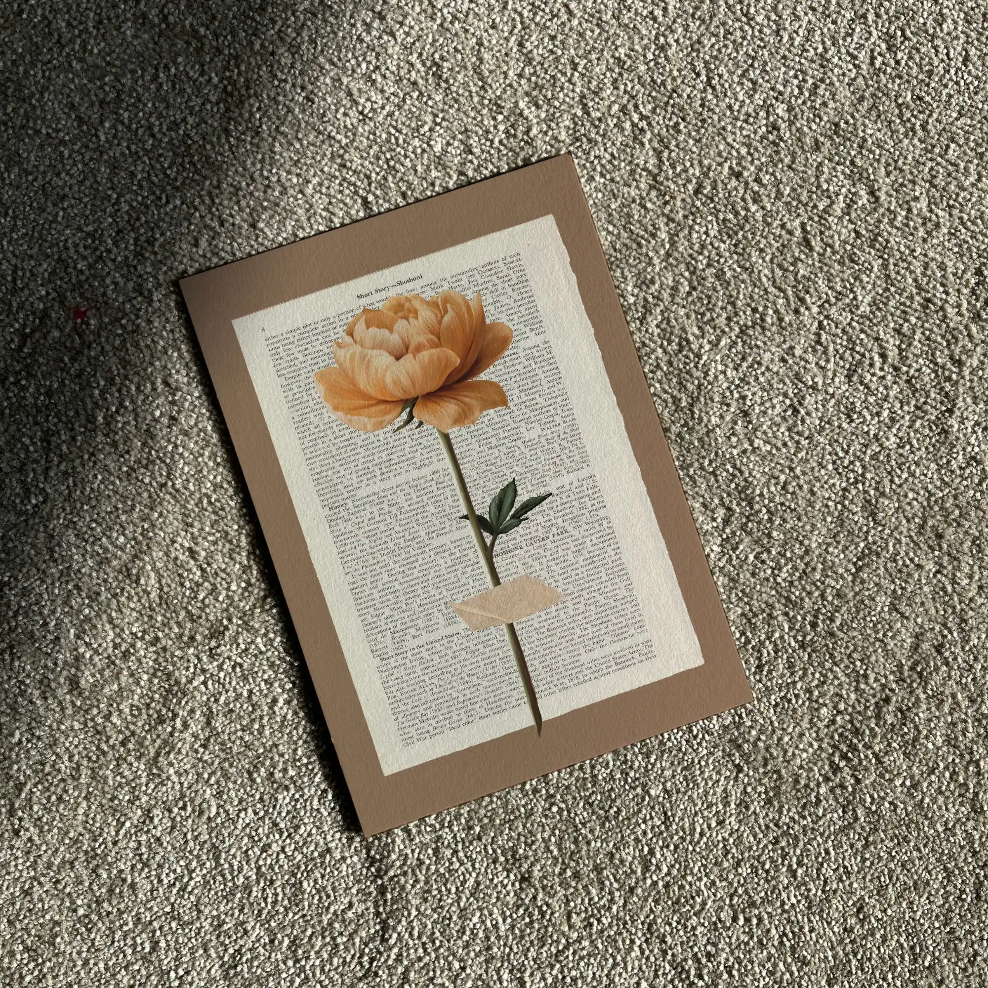 Das Besondere an diesem Stil ist das Zusammenspiel aus Typografie und Natur. Die Kunst auf Buchseiten erzeugt eine warme, intellektuelle Atmosphäre und macht jedes Blumen-Poster im Vintage-Stil zu einem besonderen Blickfang. Ob einzelne Knospen oder blühende Pracht – die Vintage-Blumen wirken auf dem textreichen Hintergrund lebendig und zeitlos zugleich.