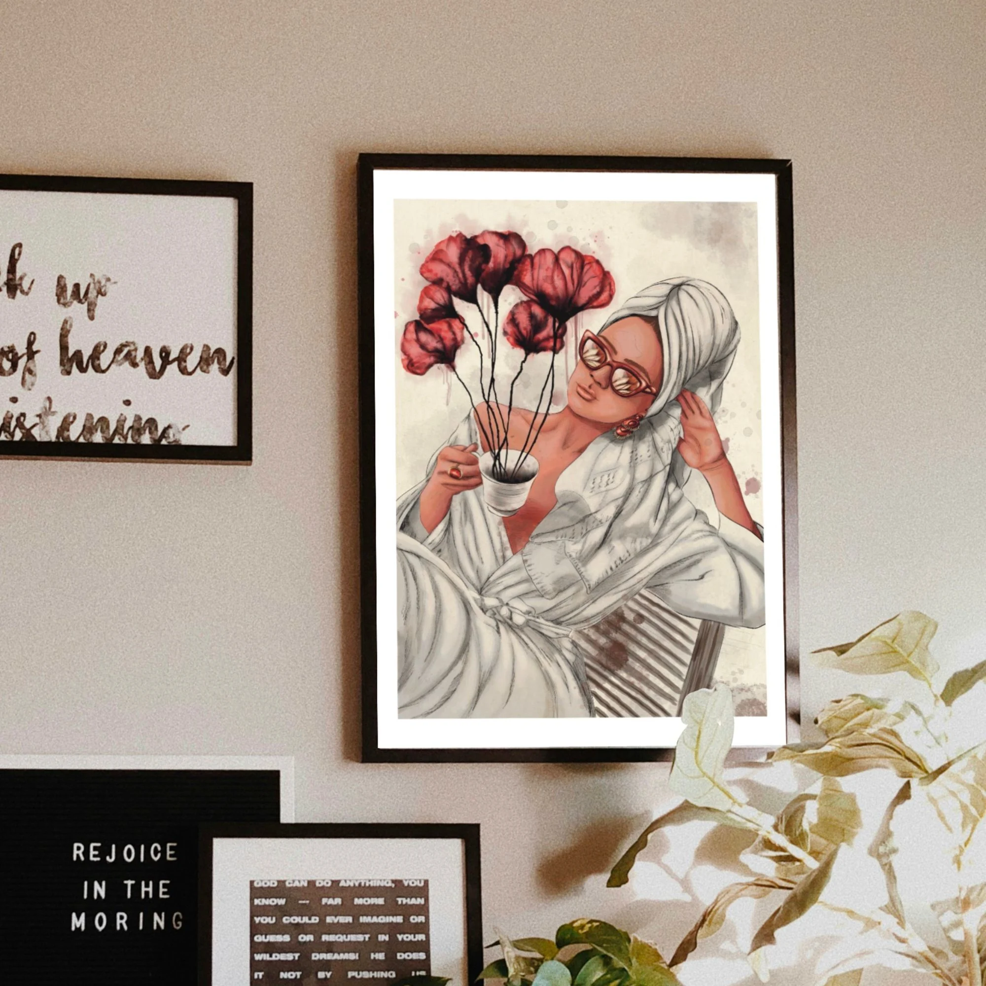 Ob als zentraler Blickfang im Wohnzimmer, als mystischer Akzent im Schlafzimmer oder als kreatives Feminismus-Poster in deinem Workspace – dieser Print bringt Charakter und eine unverwechselbare Aura in jeden Raum. Als moderne Wandkunst ergänzt das Motiv eklektische Einrichtungsstile, den mutigen Maximalismus oder setzt einen starken Kontrast in minimalistischen Interieurs. Es ist die ideale Wahl für alle, die das Besondere suchen und ihre Wände mit Seele füllen möchten.