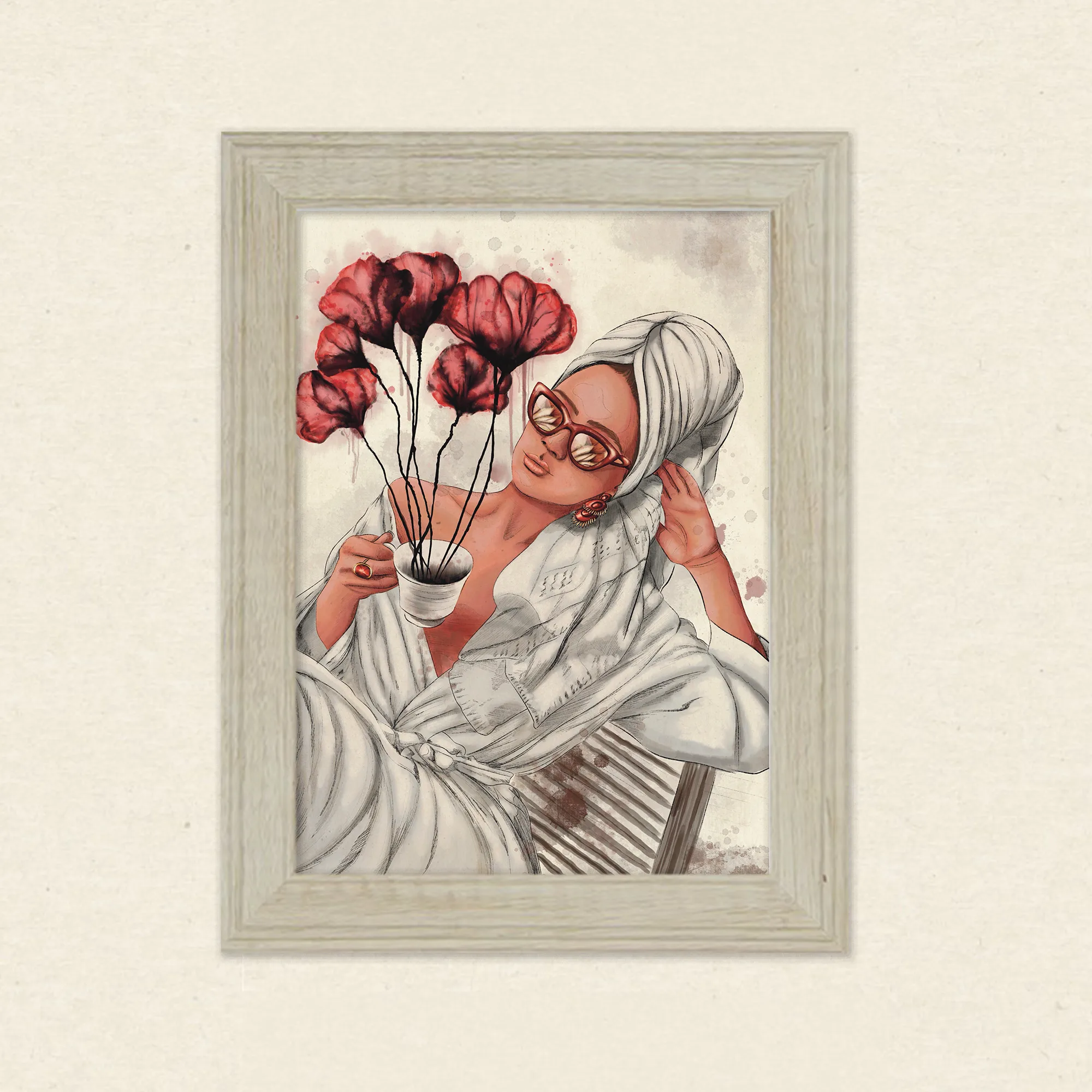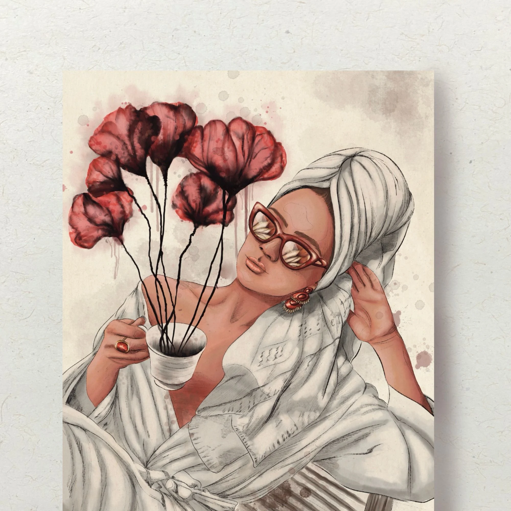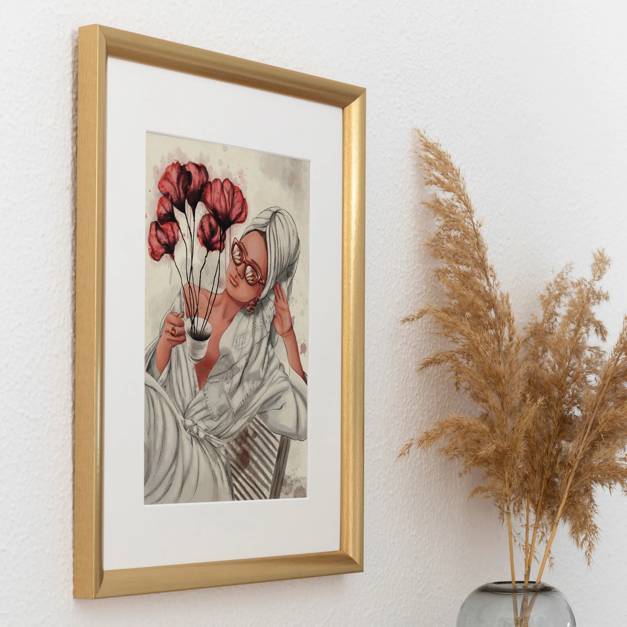 - Keywords: Porträt Frau Modern, Feminine Wandkunst, Eklektische Kunst, Magischer Realismus